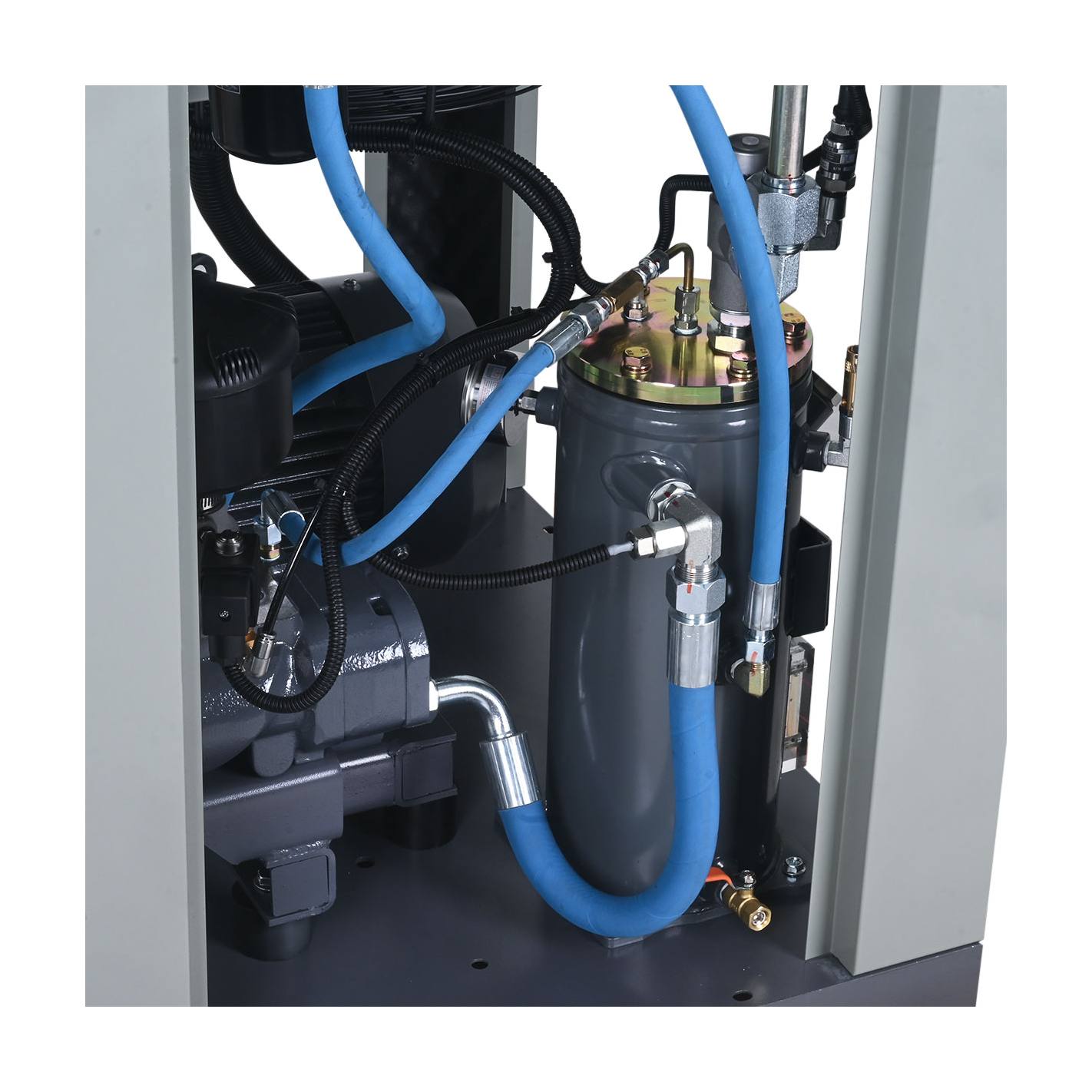 El compresor de tornillo rotativo ACO AVFB-5A representa un salto cualitativo para talleres y fábricas que buscan optimizar su consumo eléctrico y garantizar un flujo de aire sin fluctuaciones. A diferencia de los modelos de pistón, este equipo está diseñado para trabajar en ciclos de trabajo del 100%, lo que significa que puede operar de forma continua sin necesidad de paradas por sobrecalentamiento. Su tecnología de tornillo lubricado ofrece una entrega de aire más limpia y estable, ideal para alimentar maquinaria CNC, líneas de pintura profesional y herramientas neumáticas de precisión. Gracias a su configuración trifásica de 380V, el motor de 5HP opera con una eficiencia superior, reduciendo el desgaste mecánico y prolongando los intervalos de mantenimiento preventivo.