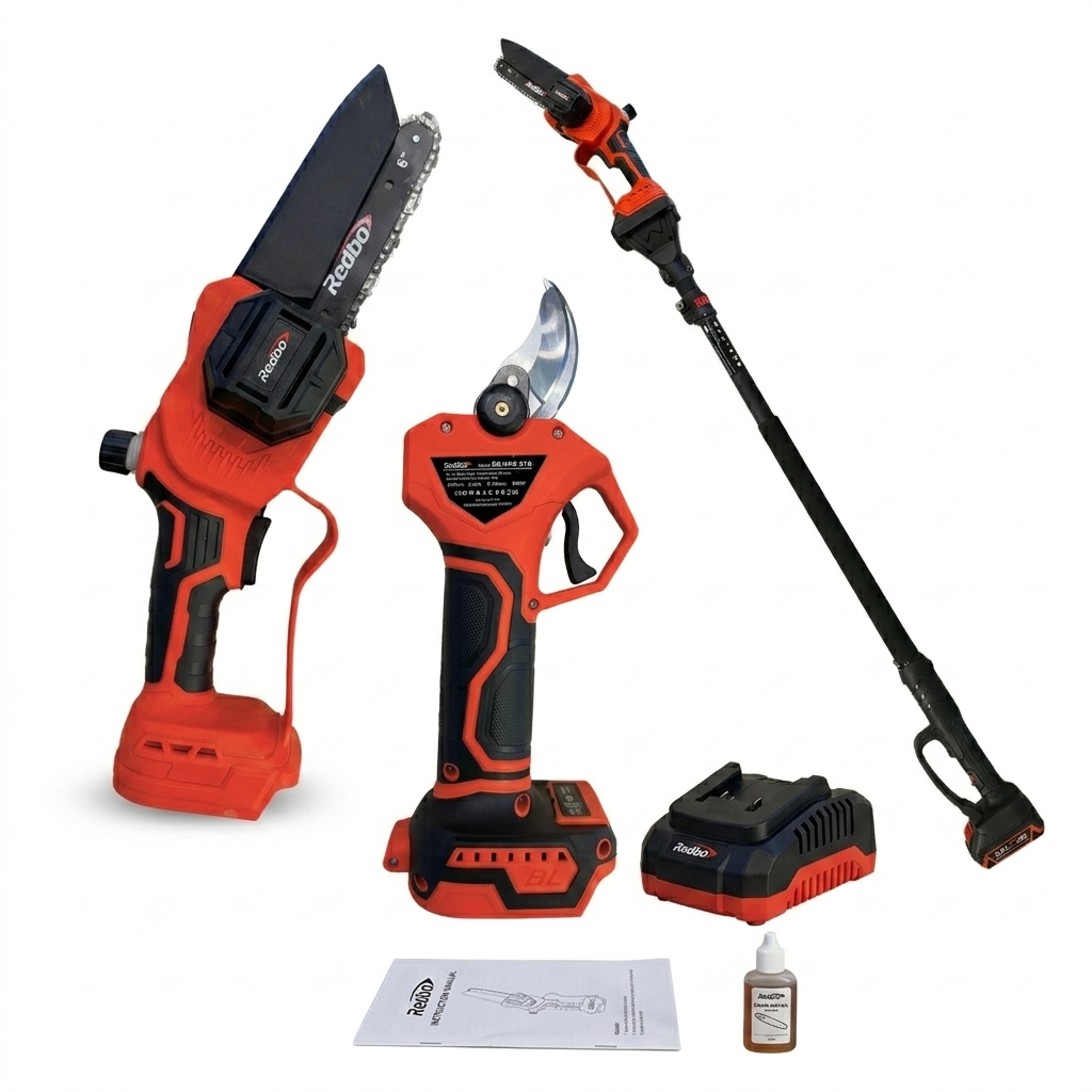 El conjunto de jardinería Redbo TM0001 es la herramienta definitiva para quienes buscan eficiencia y seguridad en el cuidado de árboles y arbustos. Este sistema 3 en 1 combina la precisión de una tijera de poda con la potencia de corte de una mini sierra, todo integrado mediante una barra telescópica de alta resistencia. Gracias a su diseño modular, permite pasar de un trabajo manual a corta distancia a podas de ramas elevadas sin necesidad de escaleras, reduciendo riesgos y facilitando el acceso a zonas difíciles. Las hojas de corte están fabricadas en acero de alta calidad con tratamiento térmico, garantizando cortes limpios que favorecen la salud y cicatrización de sus plantas.